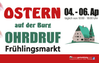 Burg & Park Ohrdruf läuten den Frühling ein: Ostern auf der Burg Ohrdruf - Die malerische Kulisse von Burg & Park Ohrdruf wird vom 30. März bis 01. April 2024 zum Treff punkt für alle Garten- und Naturliebhaber. Der Frühlingsmarkt, der den Saisonauftakt der [...]
