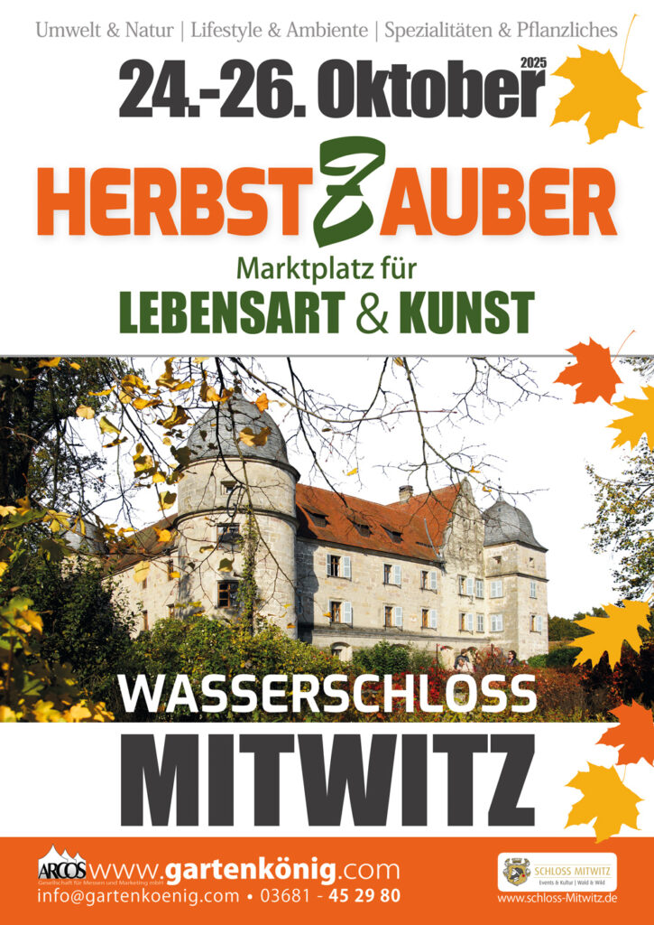 Mitwitz – Wenn die Blätter bunt leuchten und das historische Wasserschloss Mitwitz sein Tor öffnet, verwandelt sich das Anwesen in eine Bühne für herbstliche Lebensart. Mehr als fünfzig Aussteller präsentieren im weitläufigen Park, im stimmungsvollen Schlosshof und in den eleganten Innenräumen ihre vielfältigen Kreationen.
